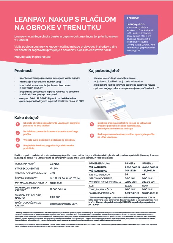 • Za nakup na obroke se odločite neposredno na prodajnem mestu.