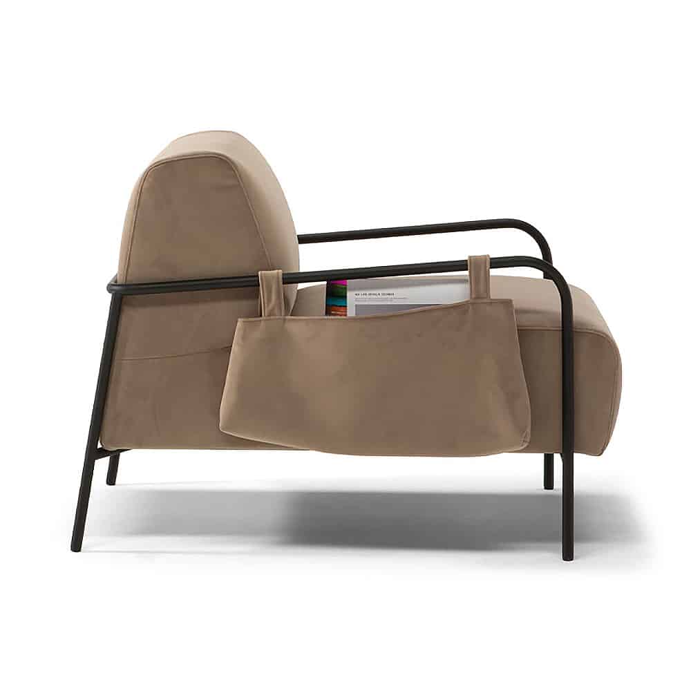 Fotelj Bit je moderne, bistvene zasnove z nizkim sedežem in značilno kovinsko konstrukcijo. Njegove preproste linije in številne razpoložljive prevleke ga naredijo idealnega za vsako okolje, od dnevne sobe do spalnice, pa tudi za profesionalni studio, ki se ne odpove eleganci.