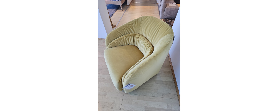 ODPRODAJA SE: fotelj Botao. Fotelj je oblazinjen v rumeno beige vrhunsko Natuzzi tkanino.