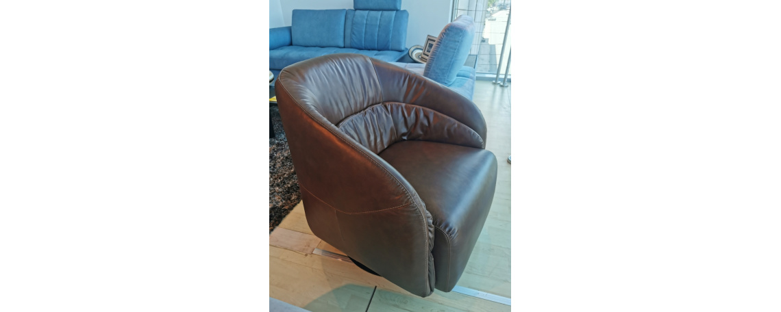 ODPRODAJA SE: fotelj Botao. Fotelj je oblazinjen v rjavo vrhunsko Natuzzi usnje.