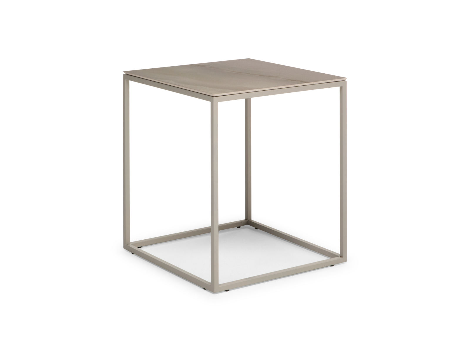 Stolić Cabaret na metalnim nogicama dostupan s pločom drveta, stakla ili keramike u više dimenzija.