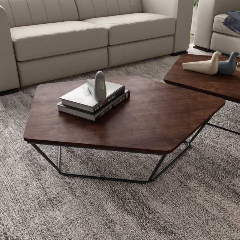 Stolić Chocolat s metalnim nogama i drvenom pločom, dimenzija 83X101 H28 cm.