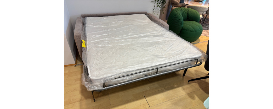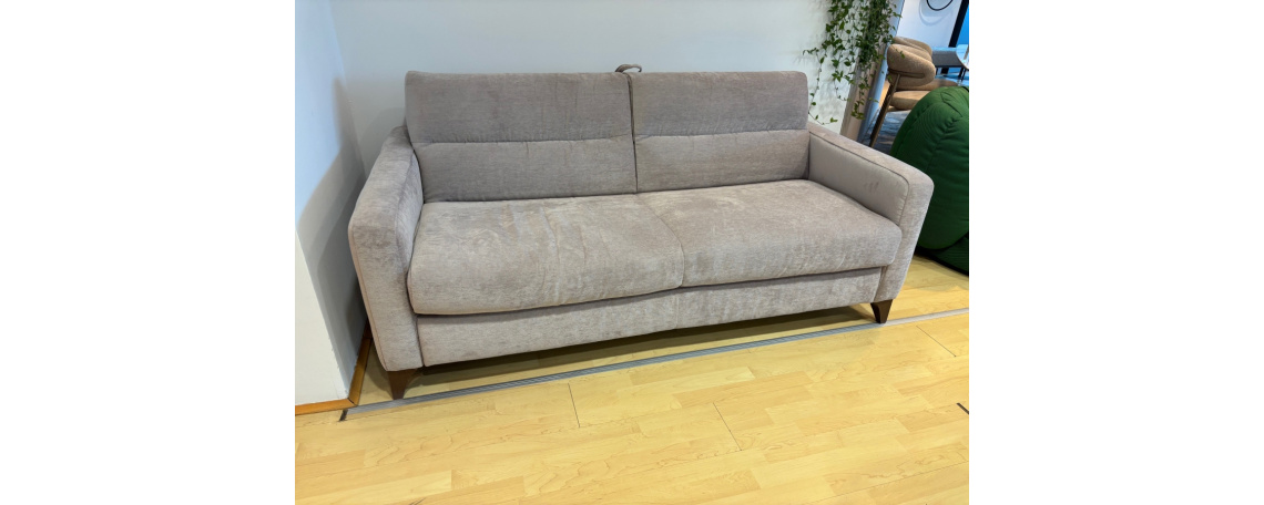 ODPRODAJA SE: trosed s posteljo Fascino. Trosed je oblazinjen v svetlo sivo tkanino.