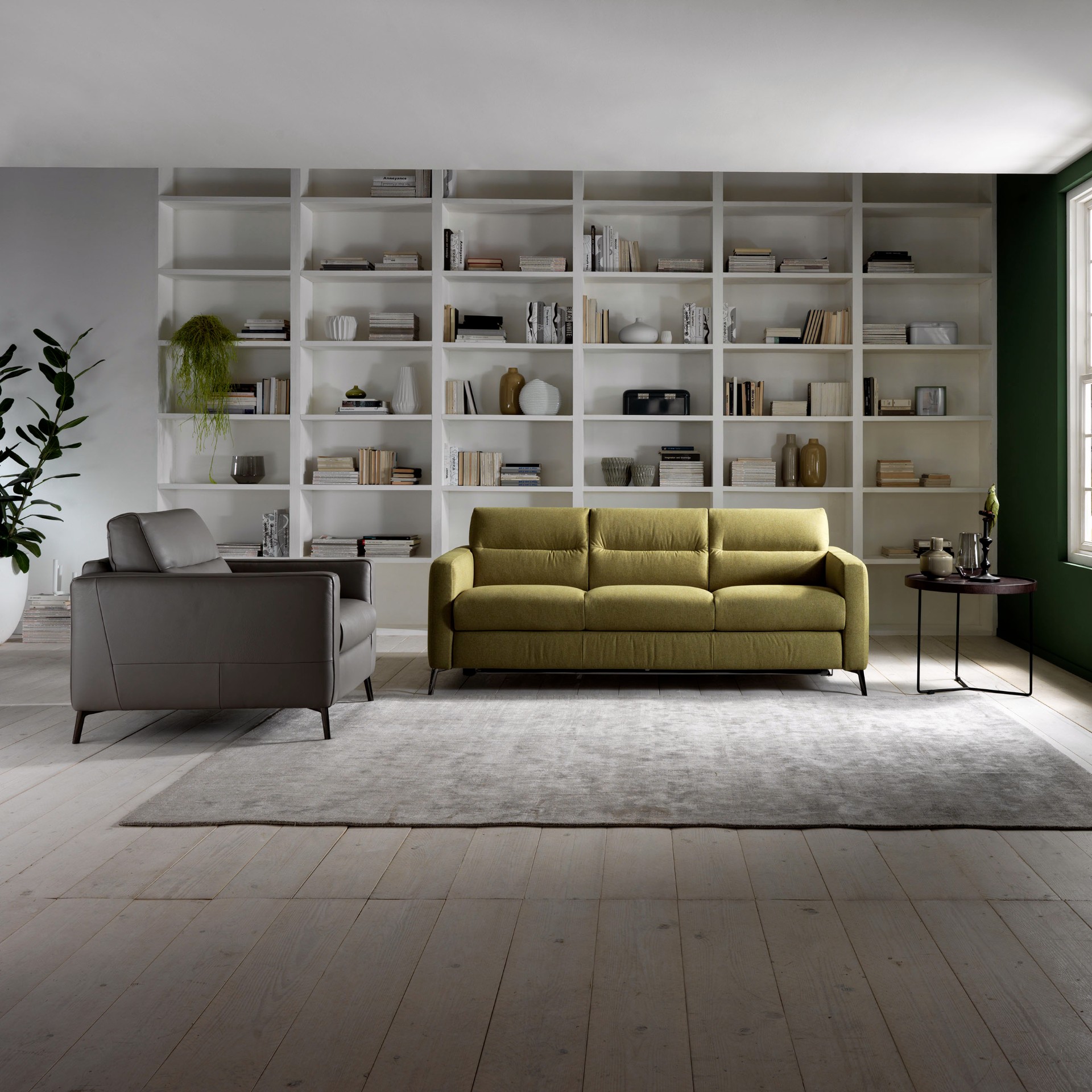 Dostupan u koži i tkanini Fascino vam omogućuje odabir trosjeda/dvosjeda sa ili bez ugrađenog kreveta.