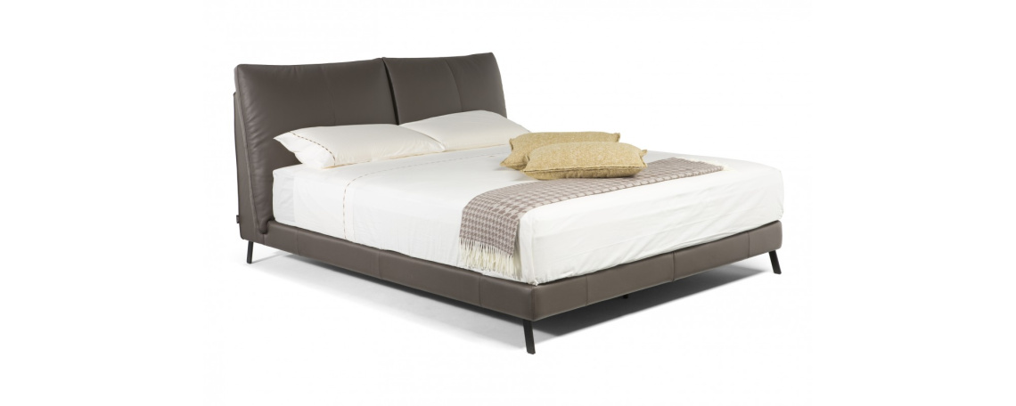 Postelja je na voljo v standardnih dimenzijah v usnju ali tkanini v več barvah.
