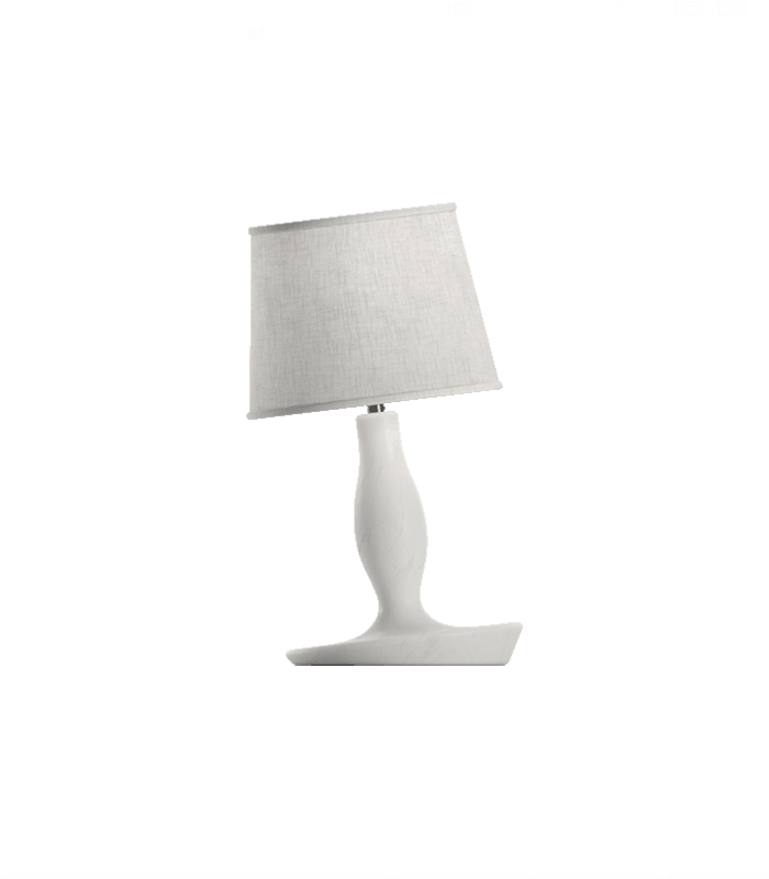 Večnamenska svetilka je sestavljena iz keramičnega ohišja z lanenim senčnikom.