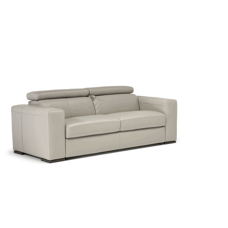 Sofa Piacevole vrlo je prilagodljiva. Možete ju odabrati s kontrastnim šavovima – u kožnoj verziji – i s drvenim nogama u različitim obradama. Naslon za glavu na svakom sjedalu može se podesiti zasebno za individualnu udobnost, odmaranje ili čitanje.