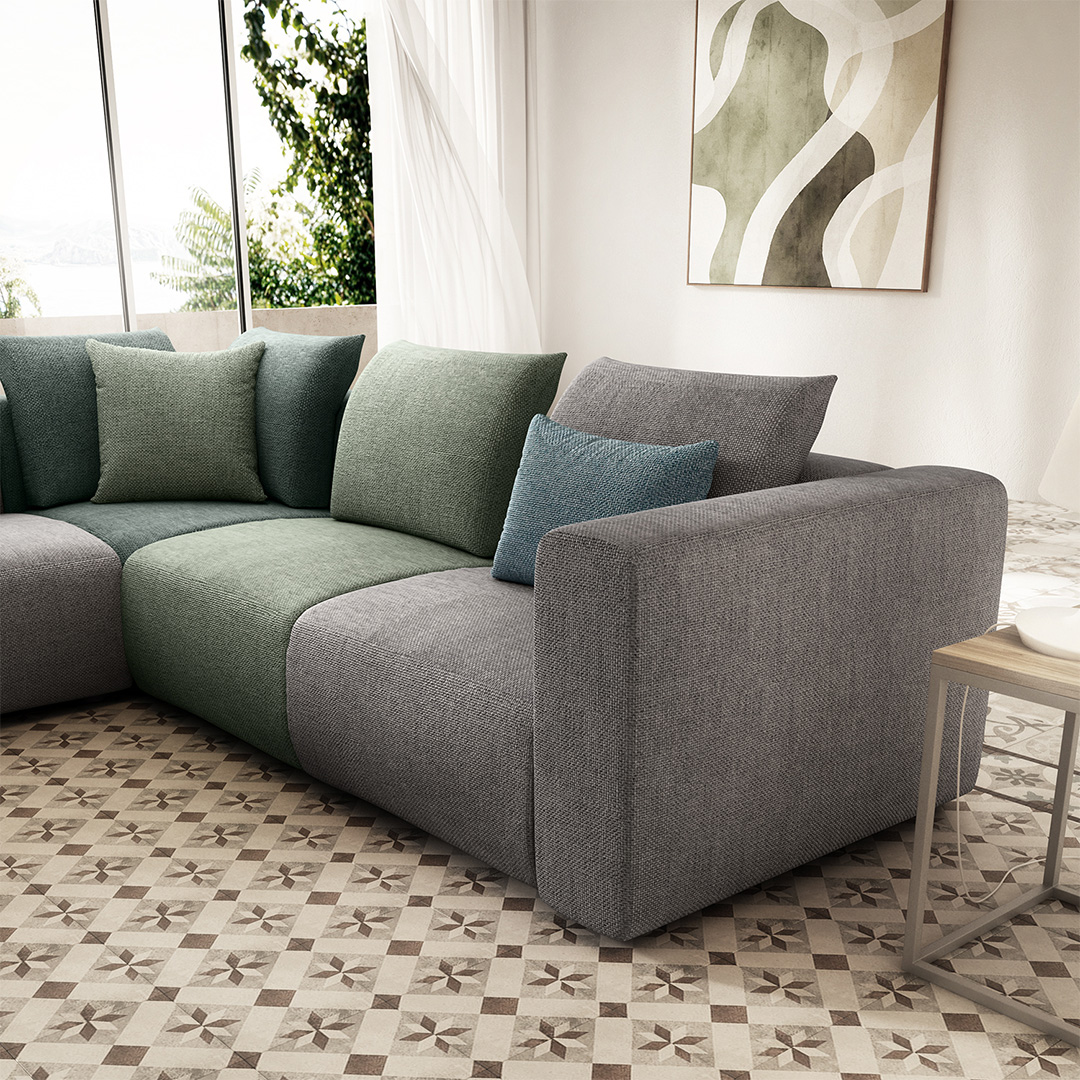 Sedežna garnitura Puzzle je dobavljiva samo v tkanini. Na voljo je veliko barv in tekstur. Posebnost garniture je, da se jo lahko sestavi v različnih barvnih odtenkih, kar ji daje poseben čar, prav tako pa ima čist in sodoben dizajn z minimalističnimi linijami, ki se prilegajo različnim slogom notranje opreme.