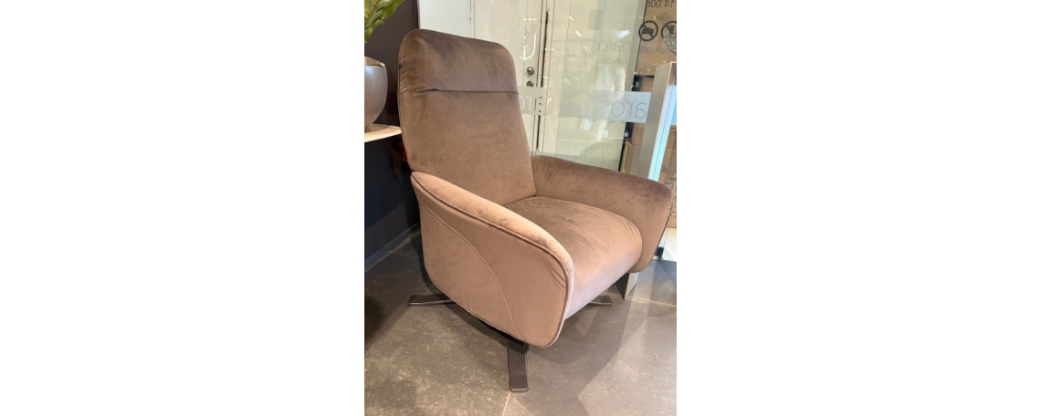ODPRODAJA SE: Fotelj SIDNEY v rjavem plišu, na vrtljivem kovinskem podstavku.