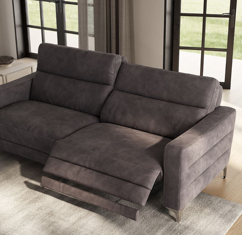 Zunanje stikalo na stranskem delu rokonaslona, aktivira relaks mehanizem brez napora, kar omogoča enostavno prilagoditev vašim potrebam po udobju. Vzglavnik in naslon za noge sta ločeno nastavljiva zahvaljujoč mehanizmu Dual Power. Mehanizem ZeroWall pa nudi velik razpon odpiranja nožnega dela in nagiba hrbtnega dela, pri čemer ni potrebno odmikanje garniture od stene.