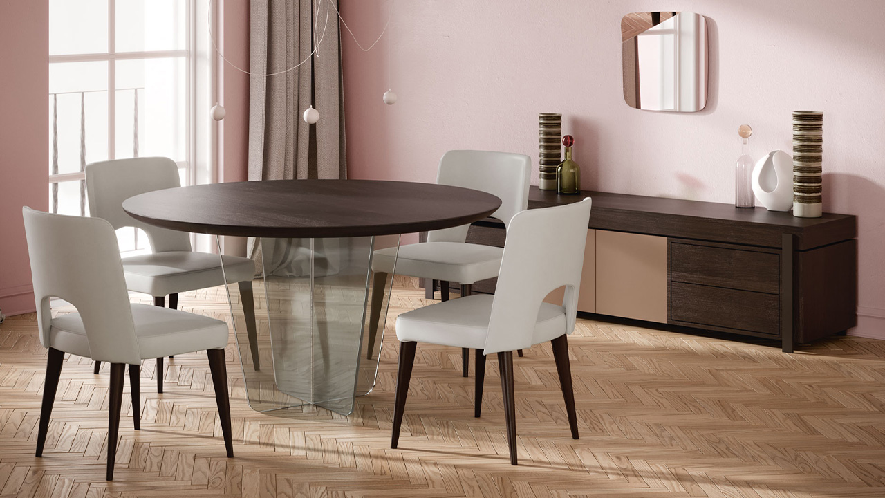 Jedilne mize so izdelane iz visokokakovostnih materialov: lesa, keramike, stekla in kovine. Mize Natuzzi Editions so na voljo kot fiksne ali raztegljive, v standardnih dimenzijah, okrogle ali pravokotne oblike.