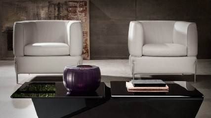 Anteprima je sodoben fotelj s preprostimi linijami in nizkim naslonjalom na kromiranih kovinskih nogah. Fotelj je na voljo v usnju ali tkanini.