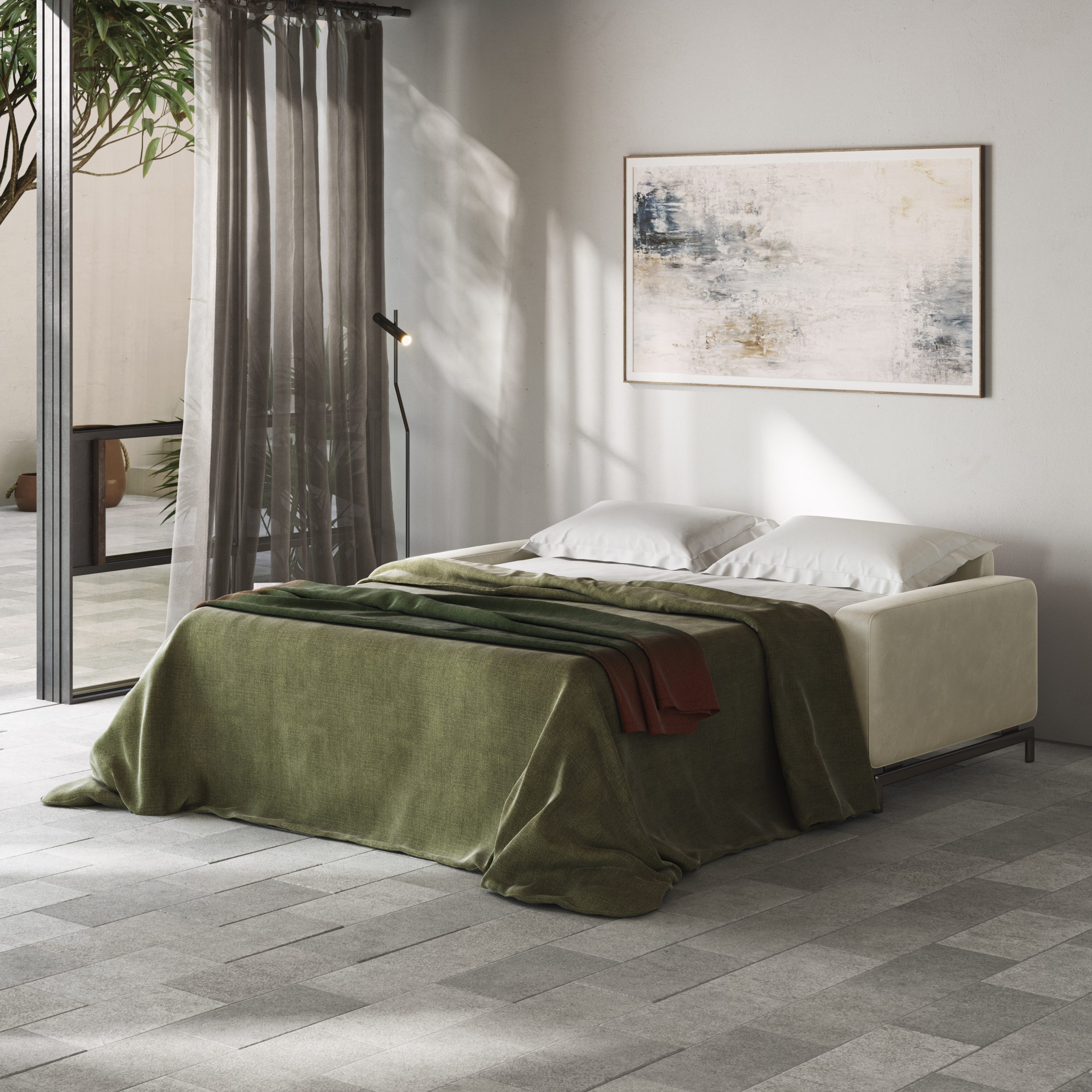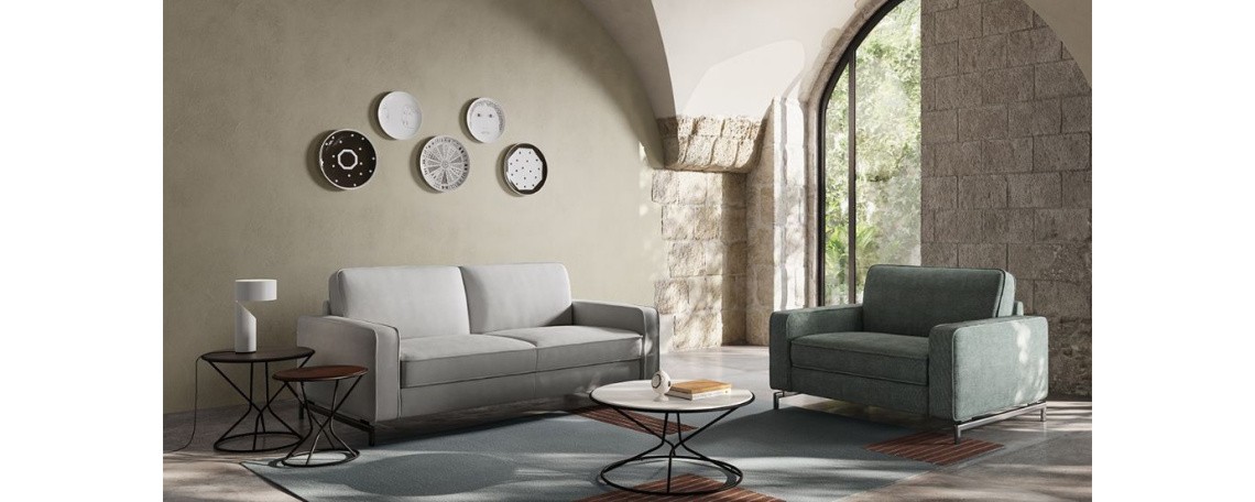 Raztegljiv kavč Capriccio temelji na kvadratnih oblikah, združuje preprostost in eleganco za urbane prostore. Kovinske noge osvetlijo njegove vodoravne linije, medtem ko ga izbirni kontrastni robovi kot opcija popestrijo in naredijo edinstvenega.
