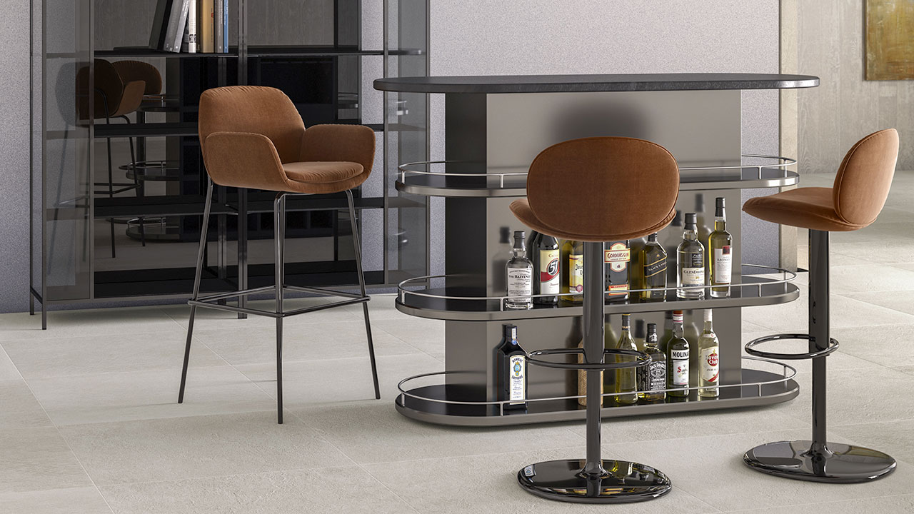 Barski stol z nezamenljivim slogom in eleganco lahko dopolni vaš dnevni prostor. Oblazinjenje iz žameta ali usnja se meša s kovinskimi elementi iz barvnega poliranega črnega jekla. Barski stol Dove je opremljen z vrtljivim mehanizmom z nastavljivo višino.