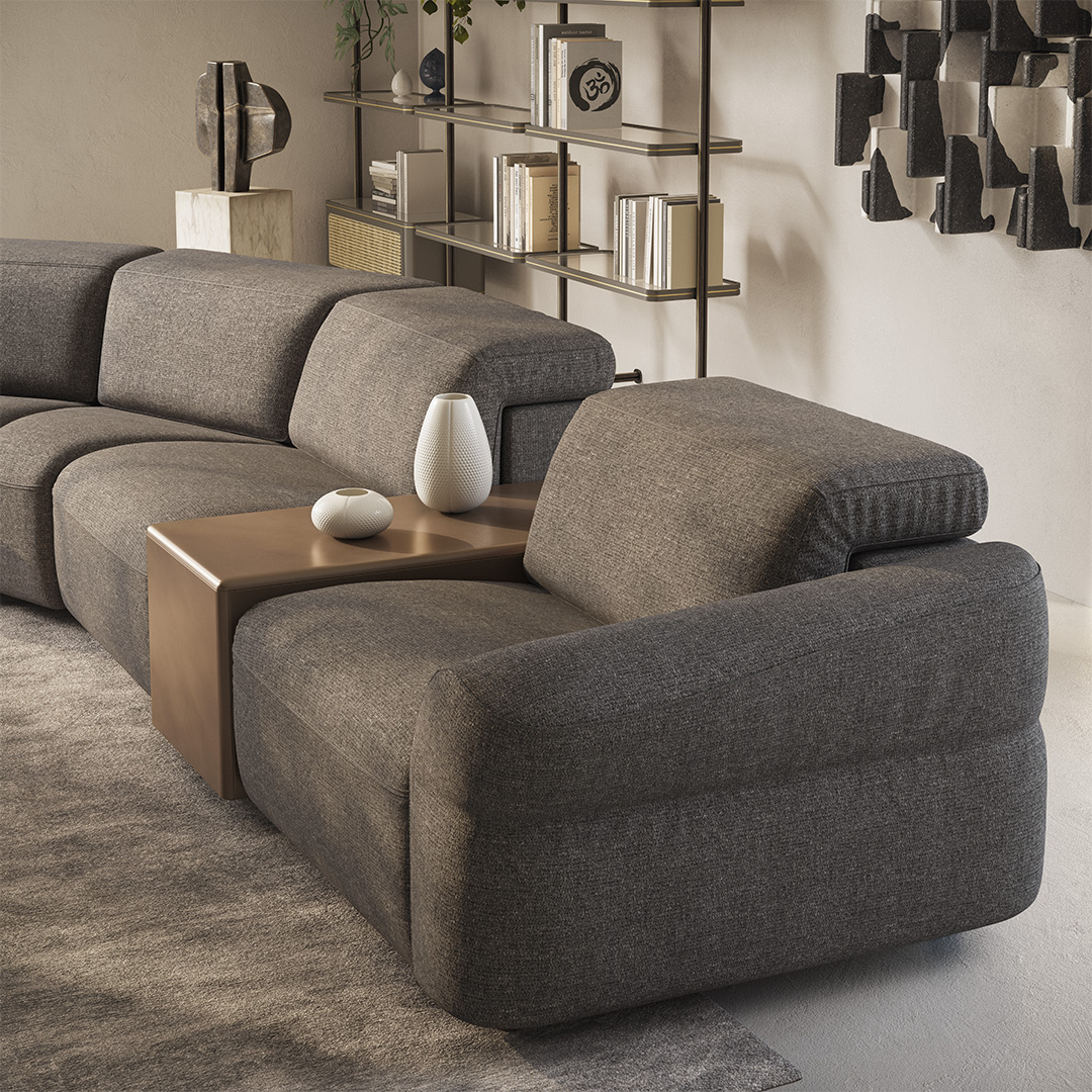 Osupljiva sedežna garnitura Faraone je mojstrovina, ki jo je oblikoval naš oblikovalski center Natuzzi in je navdihnjena z eleganco in močjo kraljice Nefertiti. Faraone združuje modularno zasnovo, vrhunski dizajn in inovativno tehnologijo. Ta sedežna garnitura je izjemen kos za opremo sodobnih bivalnih prostorov. Izbor modularnih elementov dopolnjujejo lesene odlagalne mizice in polkrožni kotni element, kateri omogoča sestavo kreativnih postavitev za vaš interier.