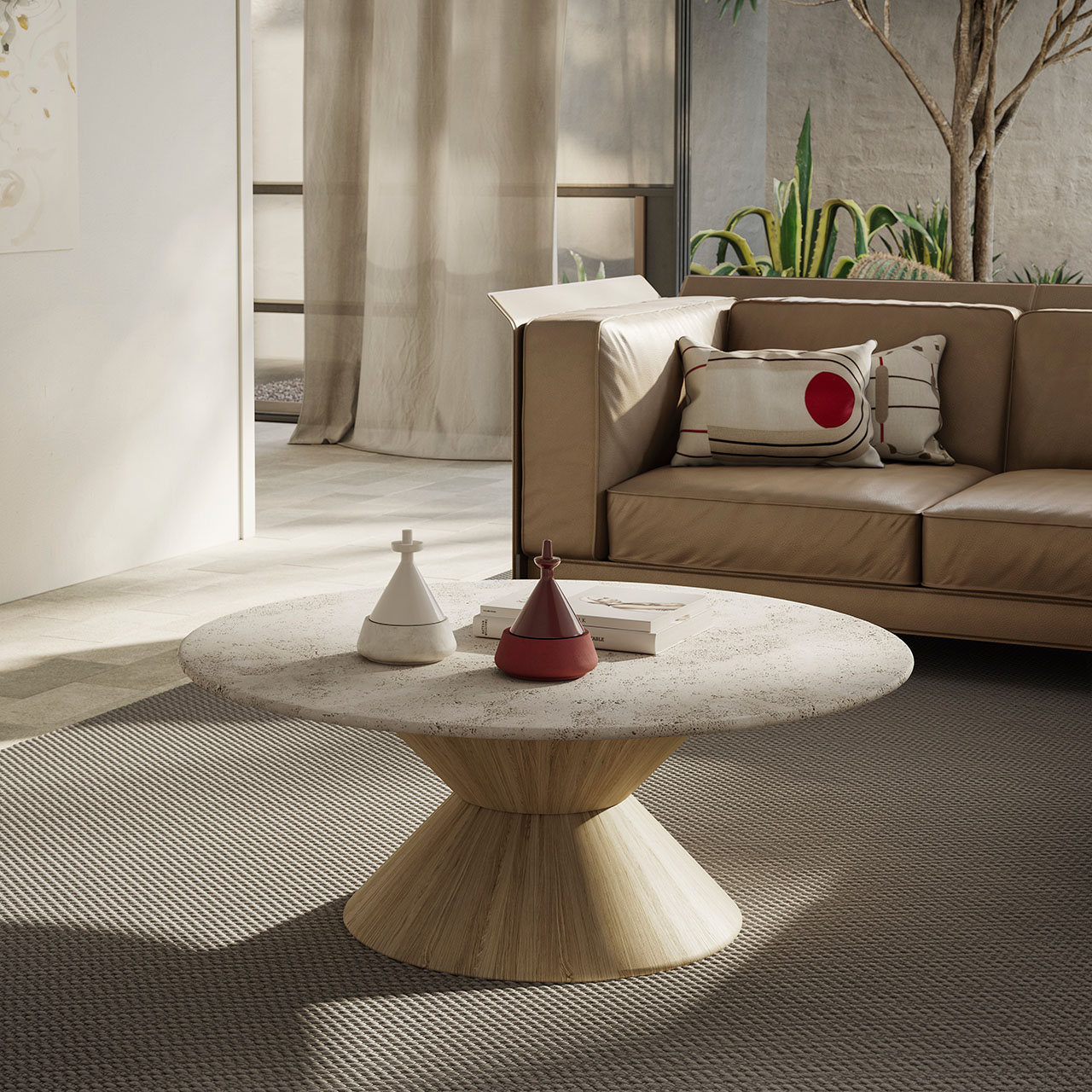 Klubska mizica, ki poudarja potrebe po sodobnem bivanju in vsestranskem pohištvu, se izraža v klubski mizici Feudo, konstruktivni kombinaciji preprostih in kiparskih geometrijskih oblik. Zgornji del je disk, medtem ko je osnova sestavljena iz dveh simetrično postavljenih prisekanih stožcev.