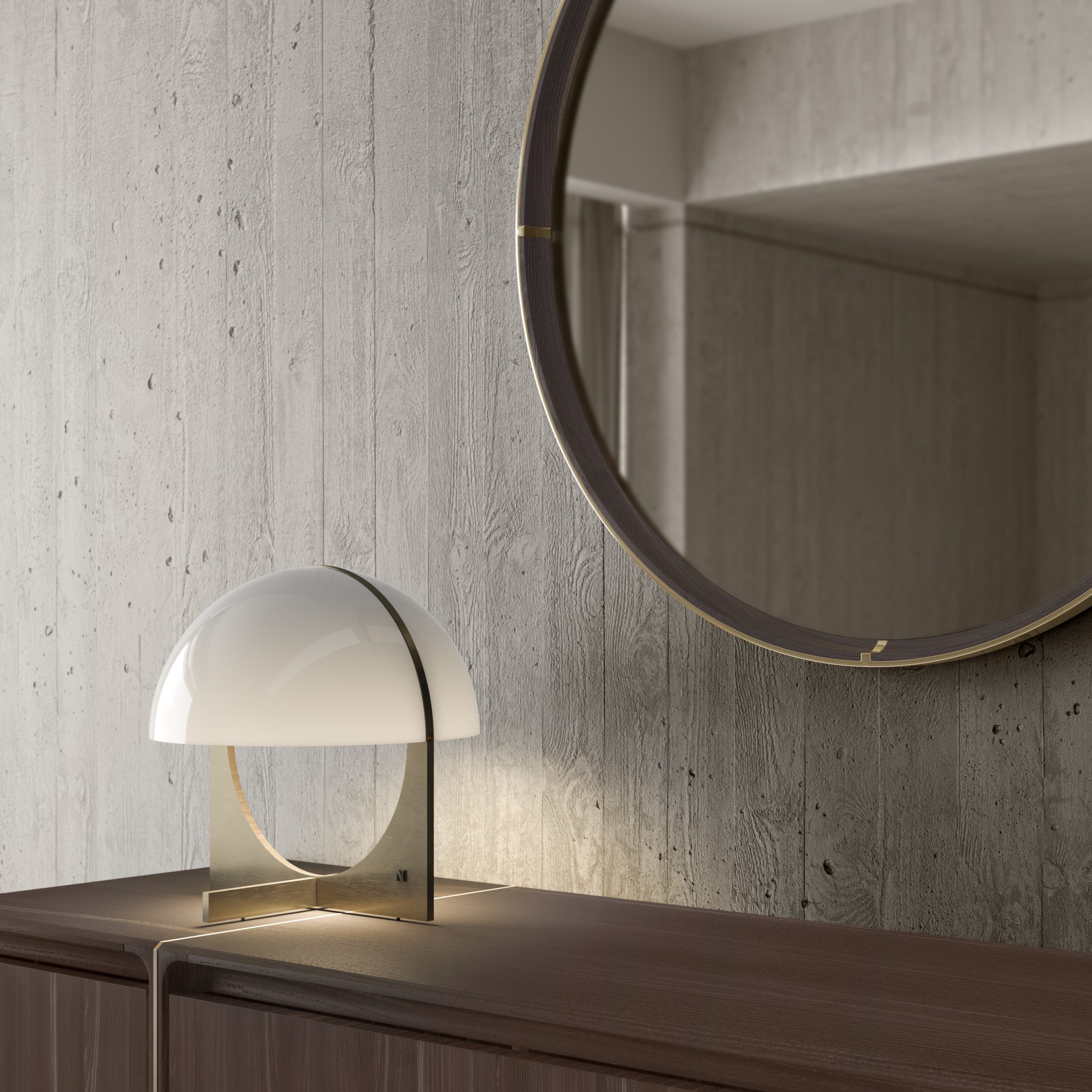 Izvrstne podrobnosti, poudarjene s kovinskim dizajnom, ki okrasi projekt. Pametni kontrasti in okusne kombinacije lesa in kovine: ogledalo Kendo iz bronastega stekla ima trden orehov okvir in barvane kovinske vložke. Odraža prefinjeno dušo.