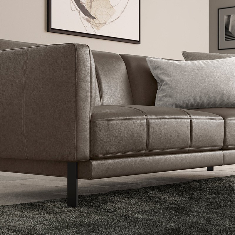Stoji na kovinskem podnožju, ki mu daje lahkotnost in geometrično stabilnost. Navpični, okrasni šivi potekajo vzporedno z rokonasloni, ki se končajo nekoliko pred robom, kar je posebnost dizajna kavča, in tako še bolj poudarijo njegovo eleganco. Udoben in eleganten kavč Levante je primeren za ljudi, ki cenijo umirjenost, linearen slog in čar geometrijskega dizajna.