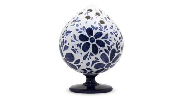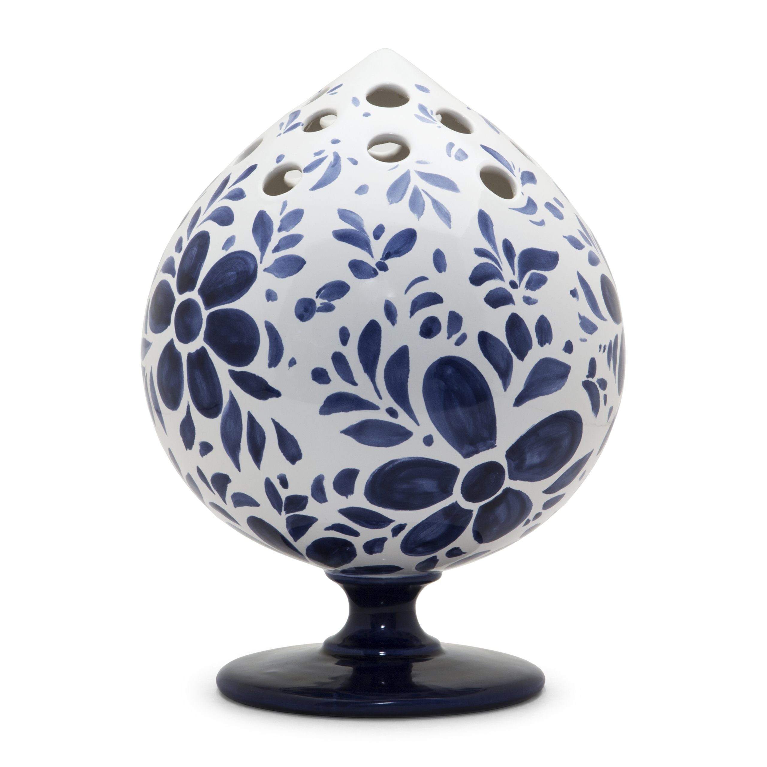 Zasnoval Marcel Wanders Studio. Čudovito srečanje dveh lončarskih kultur: apulijski srečni talisman sreča delftsko modro keramiko in pozdravlja rezano cvetje v novi obliki vaze. Struktura in materiali: ročno stružena in ročno poslikana keramika.
