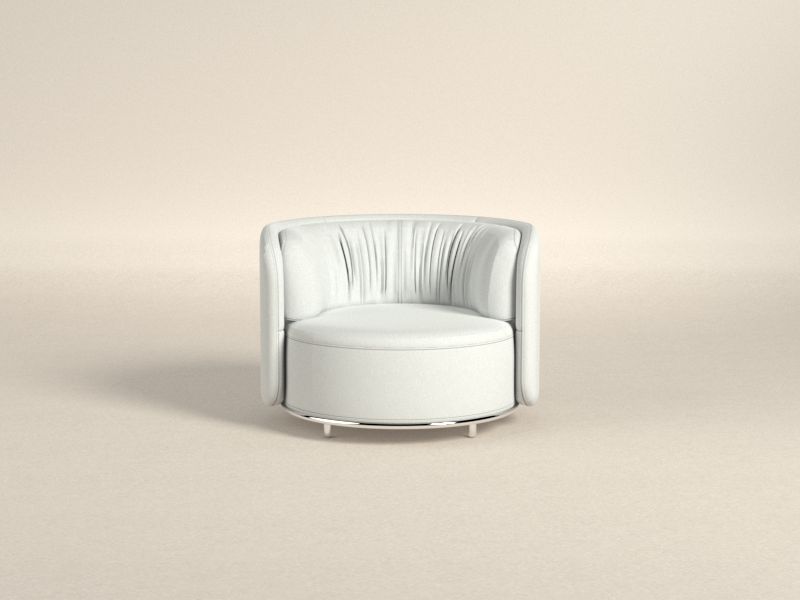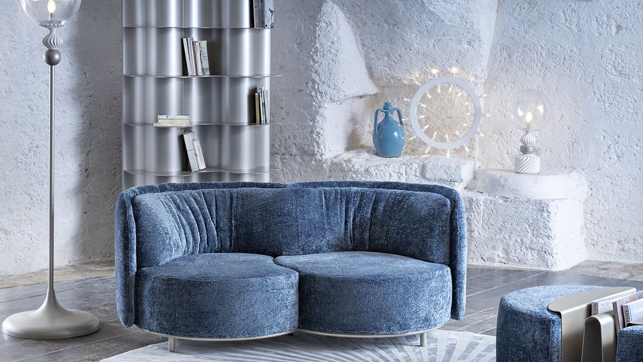 Ukrivljeno hrbtno naslonjalo obdaja okrogel sedež in hrbtne blazine ter s tem ustvarja prijeten intimni prostor. Polnilo vrhunske kakovosti z dodano plastjo spominske pene vas vabi, da se potopite v svet udobja. Dvignjeno podnožje v svetlo zlati satinirani kovini , ki je polirano in prašno lakirano ter obdelana z zaščitnim premazom proti praskam, mu daje privlačen videz.